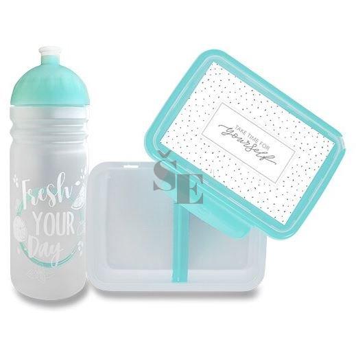 Zdravá lahev 0,7 l i svačinový box se hodí na výlety i školní svačiny. Díky ideální velikosti krabičky, posuvné vnitřní přepážce a odolnému materiálu budete mít svačinu vždy při sobě. Panty boxu umožňují odejmutí víčka. Tento set představuje unikátní české produkty vyrobené z polypropylenu určeného pro lékařské a farmaceutické využití. Materiál omezuje šíření plísní a zápachu, neobsahuje ftaláty, změkčovadla ani BPS.