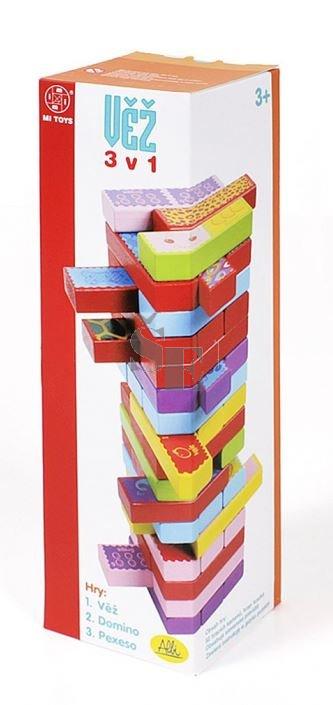 Dřevěná hra Věž dříve známá také jako "Jenga" pomáhá rozvíjet jemnou dětskou motoriku i soustředěnost. S barevnými dřevěnými kameny z Věže je možné hrát také pexeso a domino. Pexeso je skvělou cestou, jak trénovat paměť dětí, ale i dospělých. K dominu je třeba trochu té vizuální představivosti, ale zato si pořádně zasoutěžíte!