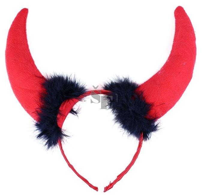 Senzační čertí rohy! Nepřehlédnutelné maxi rohy na saténové čelence jsou vyrobeny z filcu a zdobeny hebkým peřím.
