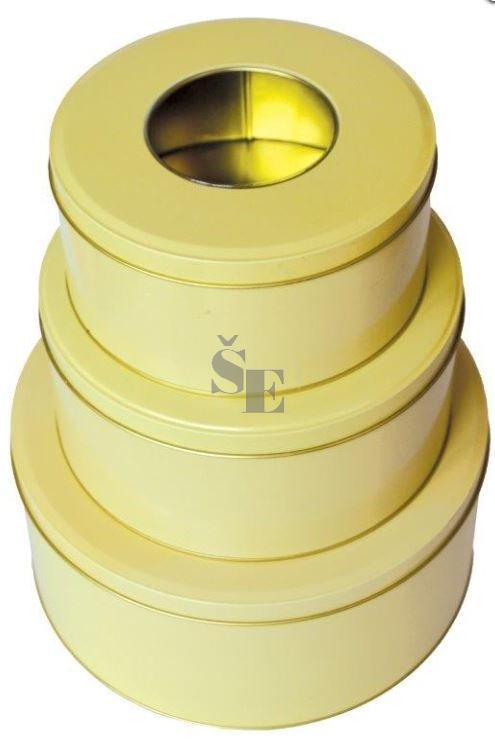 Nádherná sada 3 ks kulatých plechových dóz na cukroví, perníčky a sušenky.