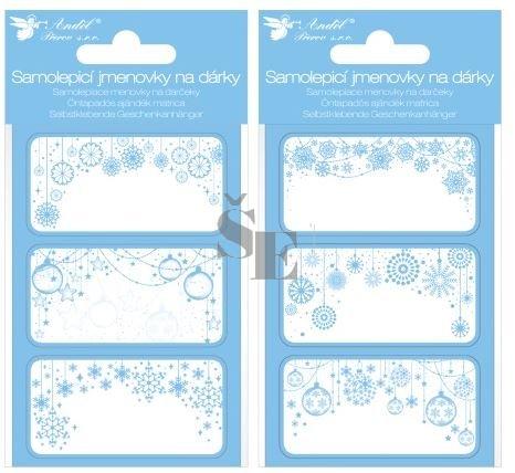 Samolepicí jmenovky na dárky 8 x16 cm s glitry, 6 ks