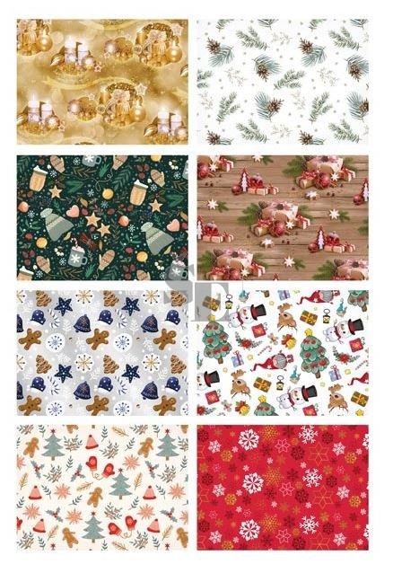 Balicí papír - vánoční role - 8 různých vzorů - U vánočního dárku je velmi důležitý obsah, ale i to, aby byl u stromečku krásně zabalený. Pořiďte si u nás dárkový balící papír s vánočním motivem. Nezapomeňte si koupit i pěknou stužku a jmenovky na dárek.