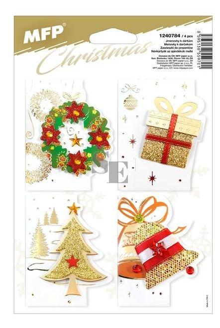 - 4 ks jmenovek s různými motivy (adventní věnec, dáreček, stromeček, zvonek)