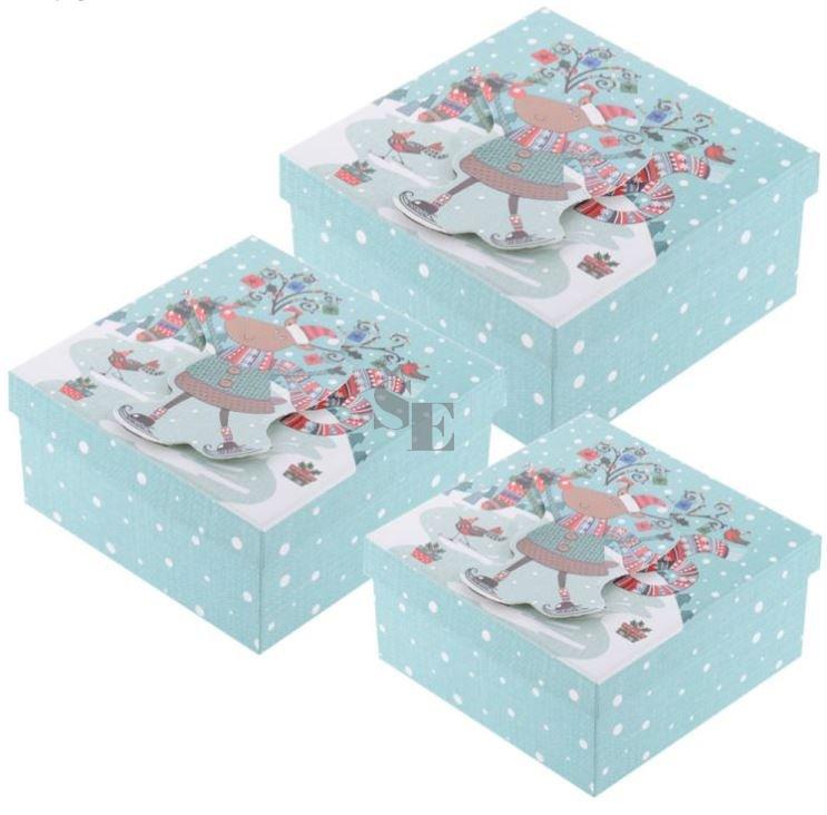 Krabičky jsou s vánočním motivem - Sobík na bruslích s glitry.