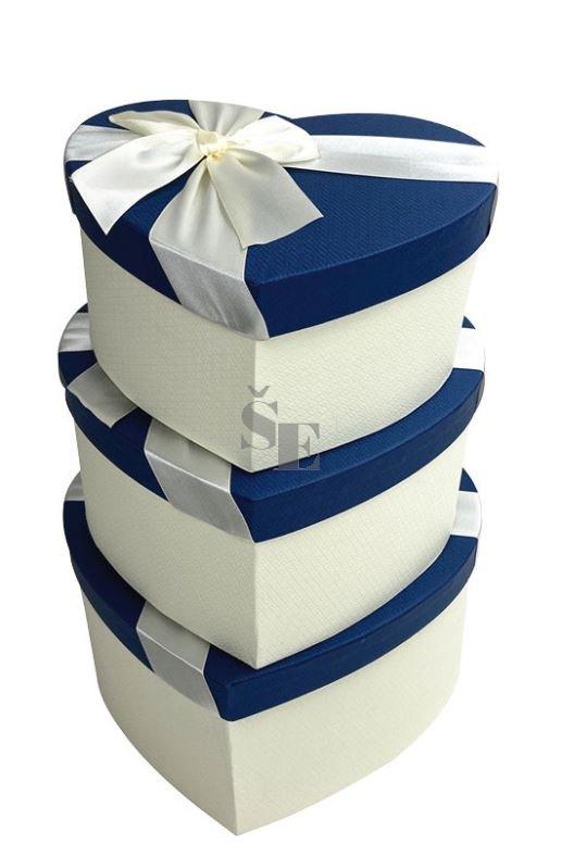 Dárkové krabičky v setu ve tvaru srdce se ozdobnou stuhou - 3ks