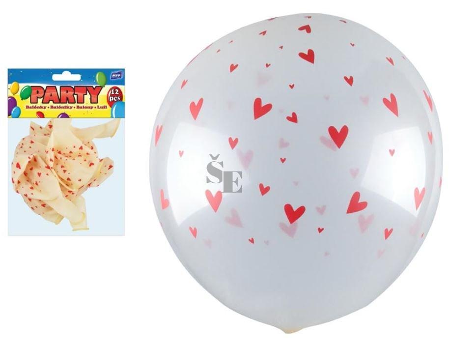 MFP paper Nafukovací balónky kulaté transparentní potisk 30cm srdíčka 12ks 8000143