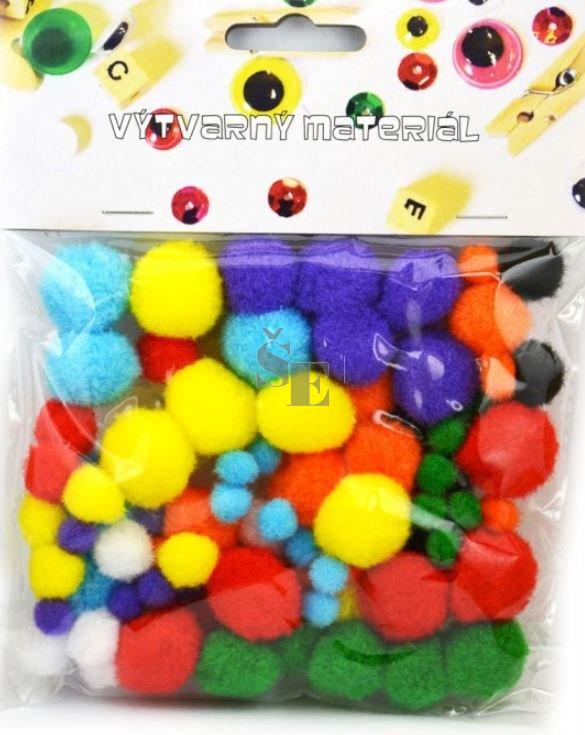 Balení obsahuje 78 ks bambulek v barvách - růžová, žlutá, sv. modrá, tm. modrá, hnědá, zelená, černá, bílá, fialová, červená
