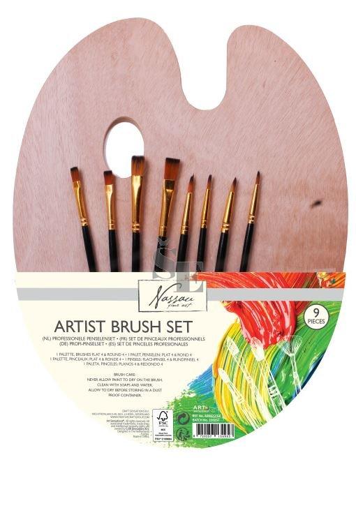 Sada uměleckých štětců obsahuje - 4x plochý štětec, 4x kulatý štětec, 1x dřevěná paleta