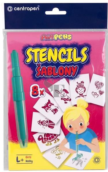 Papírové šablony s různými motivy. Tyto speciálně navržené vysoce kvalitní šablony jsou určeny k vytváření úžasných obrázků, kterými si můžete například vyzdobit své pořadače, navrhnout originální pohledy nebo pozvánky či vytvářet různé dárkové předměty jako například knihy, sáčky na dárky nebo balicí papíry. Pro lepší výsledky použijte tyto šablony s foukacími fixy. Balení obsahuje 8 kusů šablon ve formátu A5. Mix motivů