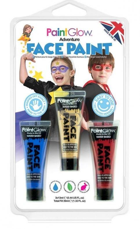 Profesionální barvy od firmy PaintGlow jsou vhodné na obličej a tělo. Barvy jsou založené na vodní bázi, bez umělých vláken s obsahem včelího vosku, palmového carnauba vosku a kokosového oleje s vitamínem E. Barvy jsou velmi jemné, snadno roztíratelné, hydratační, odolné proti rozmazání, mají příjemnou vůni a rychle zasychají. Snadno je omyjete vlažnou vodou nebo setřete kosmetickými ubrousky.