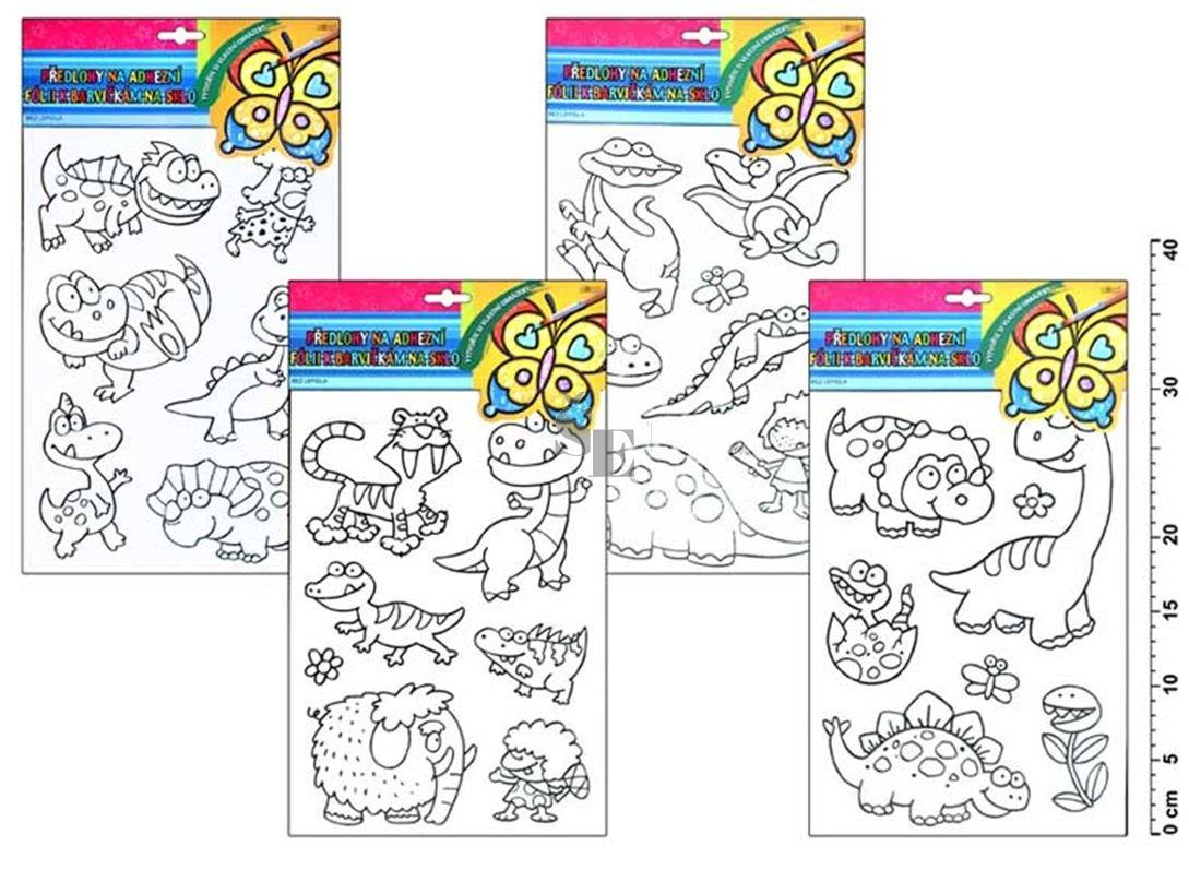 Určeno k vymalování buď barvičkami na sklo, akrylovými barvami nebo fixem - barevným popisovačem. Dinosaurus