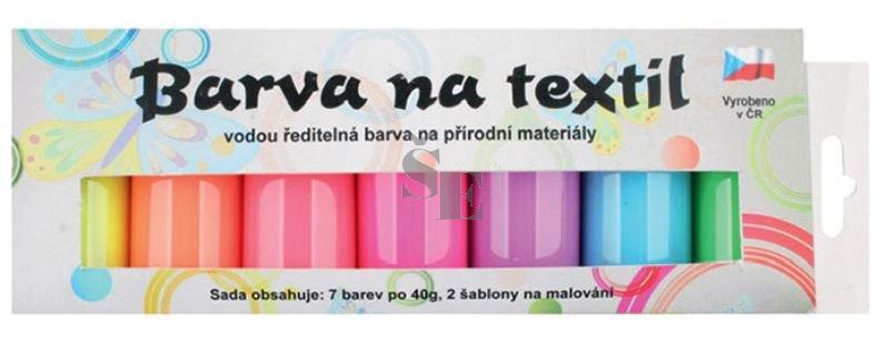 Sada barev na světlý textil svítící ve tmě 7x15 g + šablony , 6106