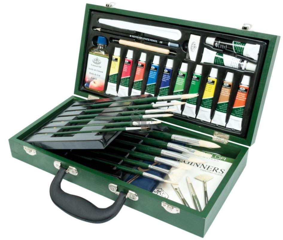 Luxusní sada na malování v dřevěném kufříku - olejové barvy
