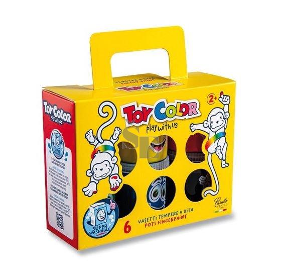 Souprava prstových barev v plastových kalíšcích. Jednotlivé barvy je možné míchat. Zasychají do 30 minut. Vypratelné z většiny běžných textilií.