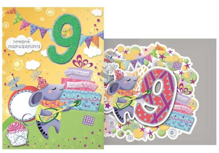 Dětské přání k 9. narozeninám s obrázkem myšky na oslavě. Oslavy narozenin patří k výjimečným a příjemným okamžikům v životě. Potěšte oslavence a spolu s dárkem mu věnujte originální a krásné přáníčko, které mu bude připomínat tuto radostnou událost.