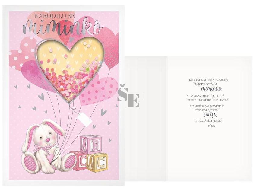 Přání k narození miminka - Krásné přání k narození holčičky s obrázkem králíčka. Přání, které udělá radost a bude se určitě líbit.