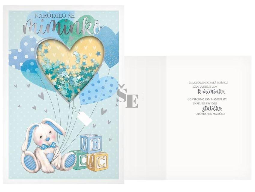Přání k narození miminka - Krásné přání k narození chlapečka s obrázkem králíčka. Přání, které udělá radost a bude se určitě líbit.