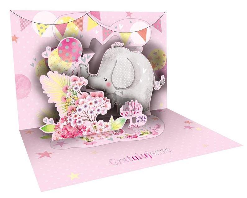 Přání k narození miminka - Krásné přání k narození holčičky s obrázkem slona. Přání, které udělá radost a bude se určitě líbit.