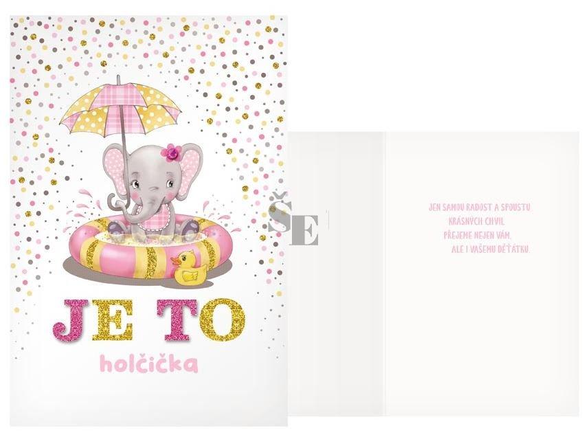 Přání k narození miminka - Krásné přání k narození holčičky s obrázkem slona. Přání, které udělá radost a bude se určitě líbit.