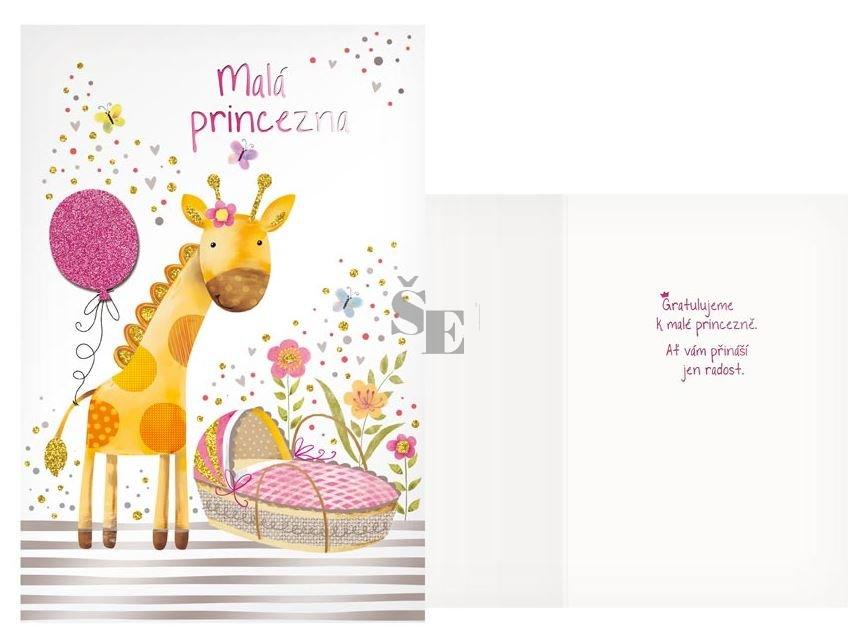 Přání k narození miminka - Krásné přání k narození holčičky s obrázkem žirafy. Přání, které udělá radost a bude se určitě líbit.