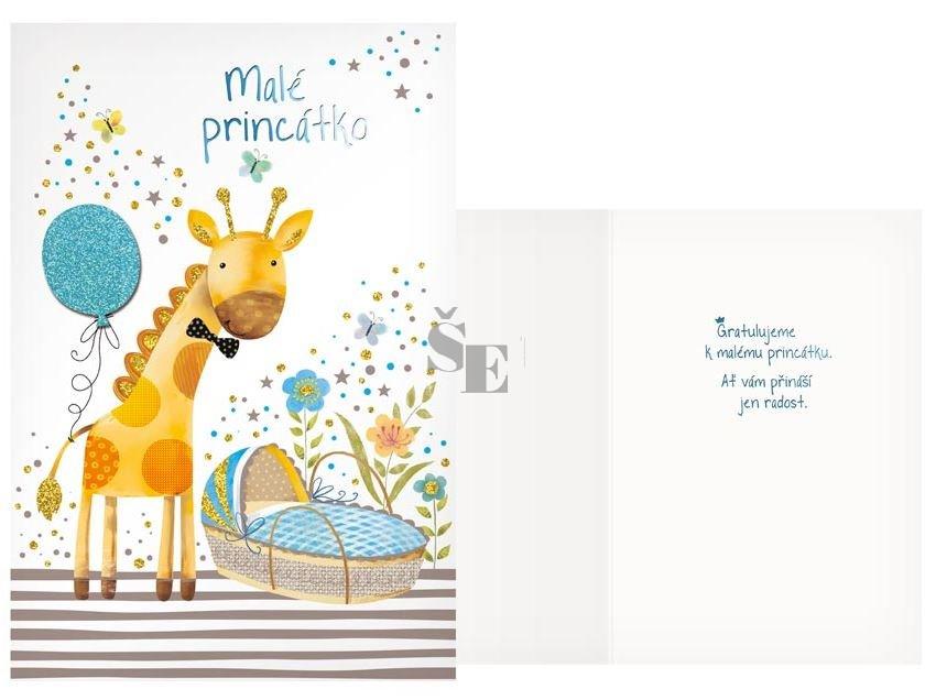 Přání k narození miminka - Krásné přání k narození chlapečka s obrázkem žirafy. Přání, které udělá radost a bude se určitě líbit.