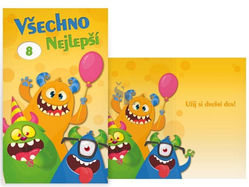 Přání k narozeninám otočné dětské. Krásné přání k narozeninám s příšerkami. Díky otočnému kolečku můžete na přání nastavit požadovaný věk od 1 roku do 12 let. Určitě tohle krásné přání udělá radost všem dětem.