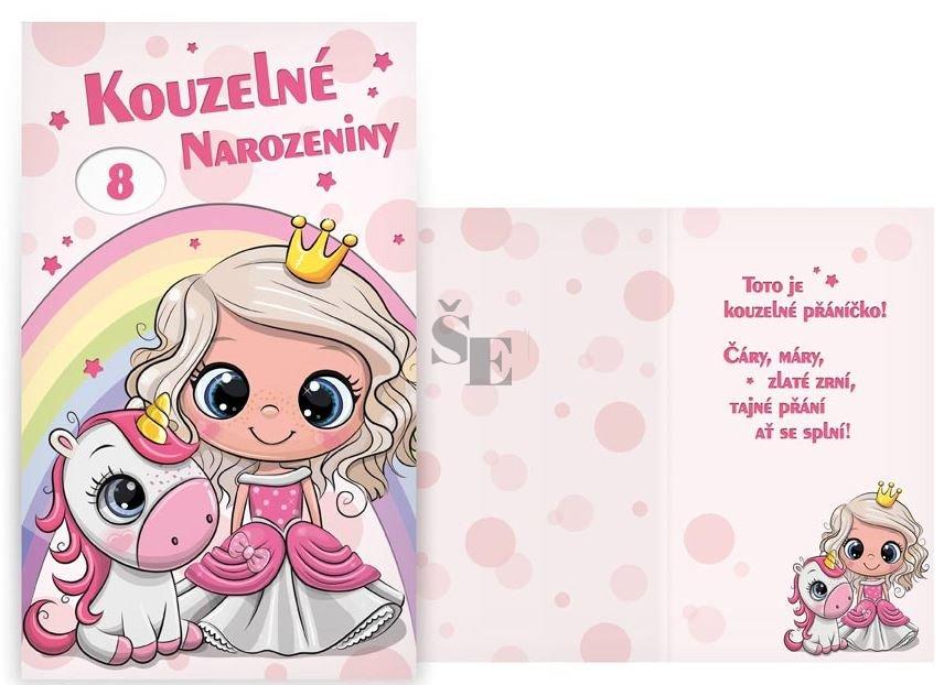 Přání k narozeninám otočné dětské. Krásné přání k narozeninám s obrázkem malé princezny s jednorožcem. Určitě tohle krásné přání udělá radost všem slečnám.