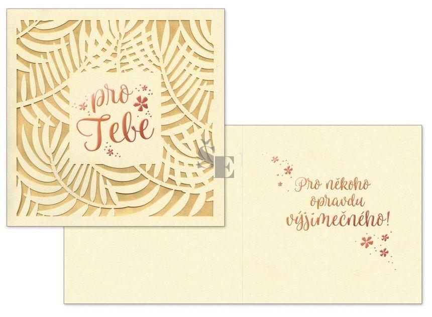 Nápis je ražený růžovo-zlatou folií, součástí přání je obálka.