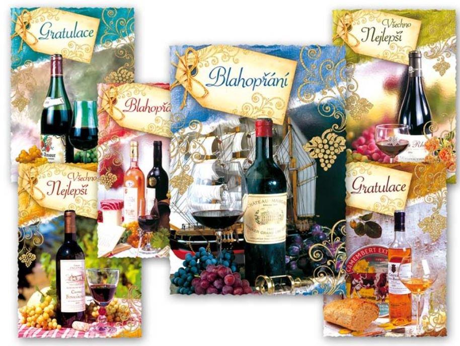 Srdečné glitrované pohlednice s výsekem. Text obsahují 3 pohledy z 6. Dodáváme v mixu dle skladové zásoby.