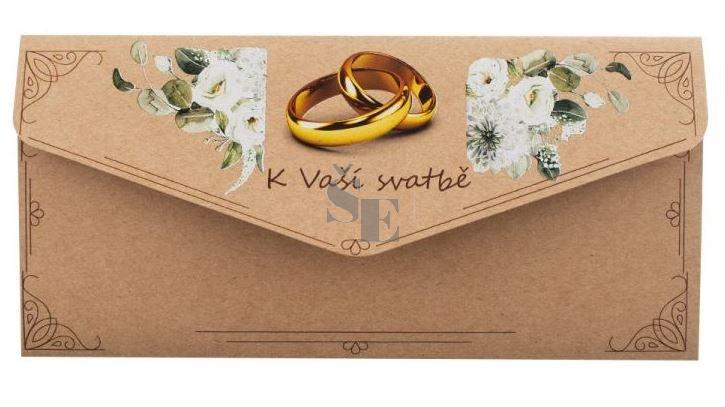 Blahopřání do obálky k sňatku s kapsou na peníze.