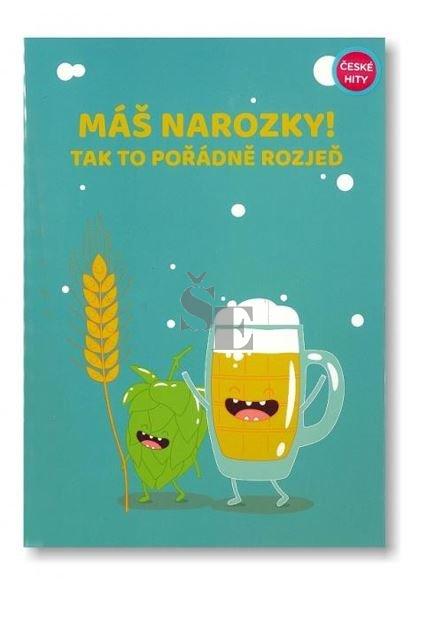 Text na titulní straně přáníčka: MÁŠ NAROZKY! TAK TO POŘÁDNĚ ROZJEĎ.