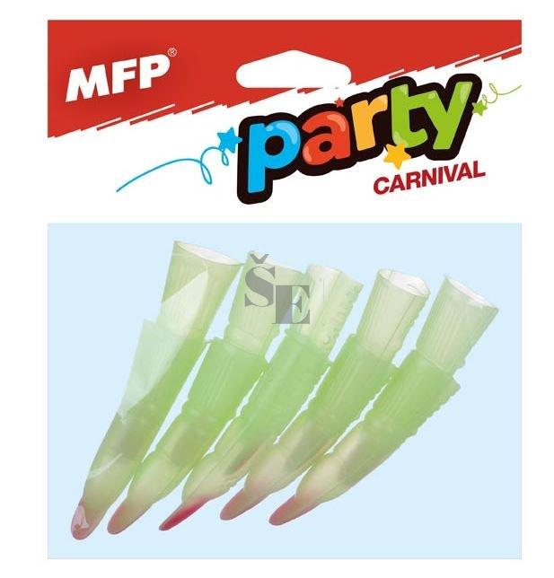 Doplněk ke karnevalové masce svítící prsty. Ideální na Halloween, maškarní ples nebo jinou párty. Prsty ve tmě svítí a váš kostým tak bude vypadat hrůzostrašně. Vyrobeno z plastu, výrobek je zdravotně nezávadný.
