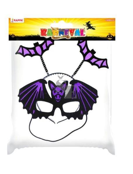 Senzační čelenka na pružinkách a maska na obličej s netopýrem. Tato sada je perfektním doplňkem na karnevalový večírek nebo Halloween párty!