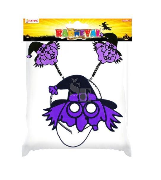 Senzační čelenka na pružinkách a maska na obličej s motivem čarodějnice. Tato sada je perfektním doplňkem na karnevalový večírek nebo Halloween párty!