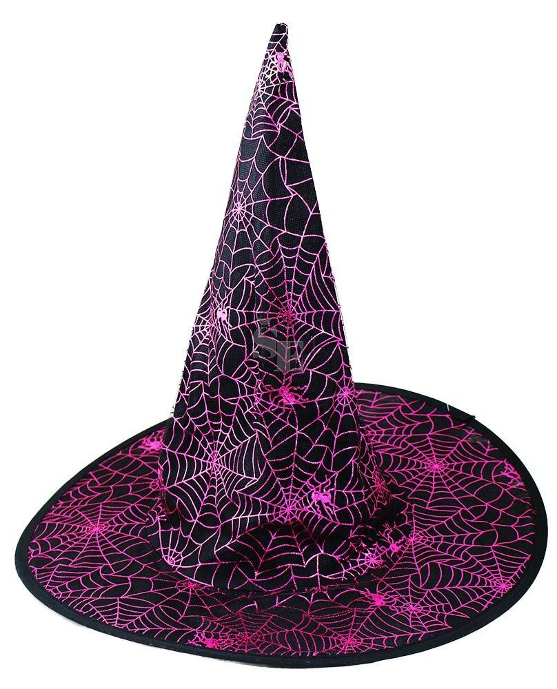 Veselý čarodějnický klobouk je skvělým doplňkem na karneval! Klobouk černé barvy je zdoben fialovými, třpytivými pavučinami. Staň se hvězdou díky tomuto klobouku!
