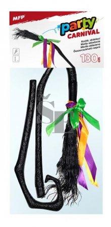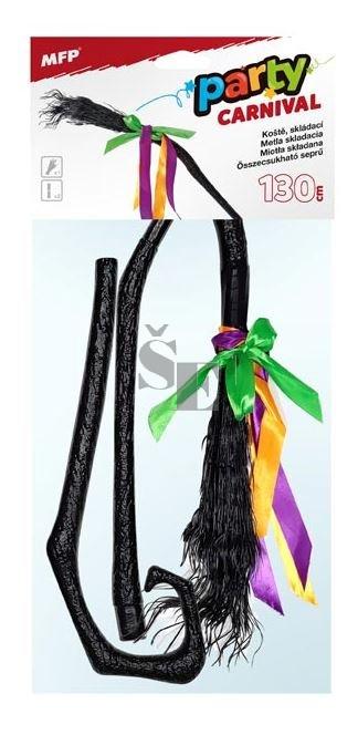 Čarodějnické skládací koště zahnuté, ozdobené na konci barevnými stužkami. Ideální doplněk ke kostýmu čarodějnice. Vyberte si z naší nabídky ještě čarodějnický plášť, klobouk, nehty a Váš kostým bude kompletní.