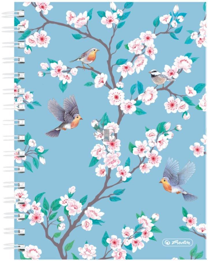 Jednoduchá spirála, perforace, zaoblené rohy, čtvereček, mix motivů ptáčci a květy