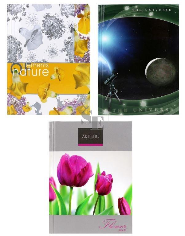 Záznamová kniha je vyrobená z kvalitního bezdřevého papíru, šitá. Obálka je z tvrdého kartónu, potištěná různými barevnými motivy a potažená laminem.