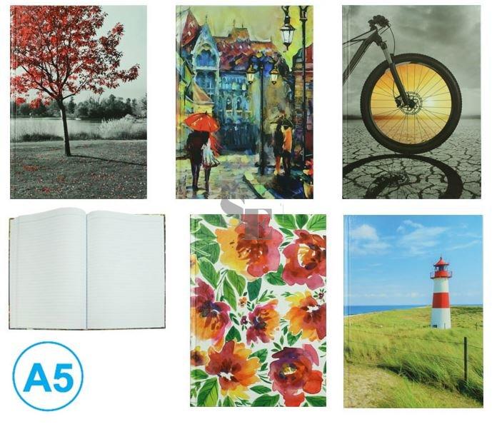 Poznámková kniha, poznámkový blok v laminovaných pevných deskách lepená.