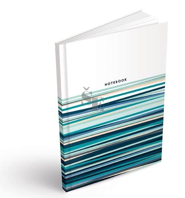 Poznámkový blok, poznámková kniha v laminovaných pevných deskách lepená.