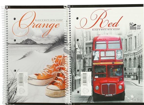 College blok z bezdřevého papíru, spirála na delší straně, čtyři otvory pro vložení do karis bloku, podlepený šedou lepenkou.