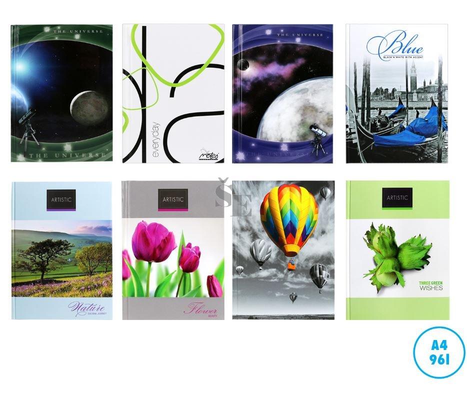 Záznamová kniha je vyrobená z kvalitního bezdřevého papíru, šitá. Obálka je z tvrdého kartónu, potištěná různými barevnými motivy a potažená laminem. Mix motivů Formát: A4 Počet listů: 192l Vzor: linkovaná 8mm Gramáž: 60g