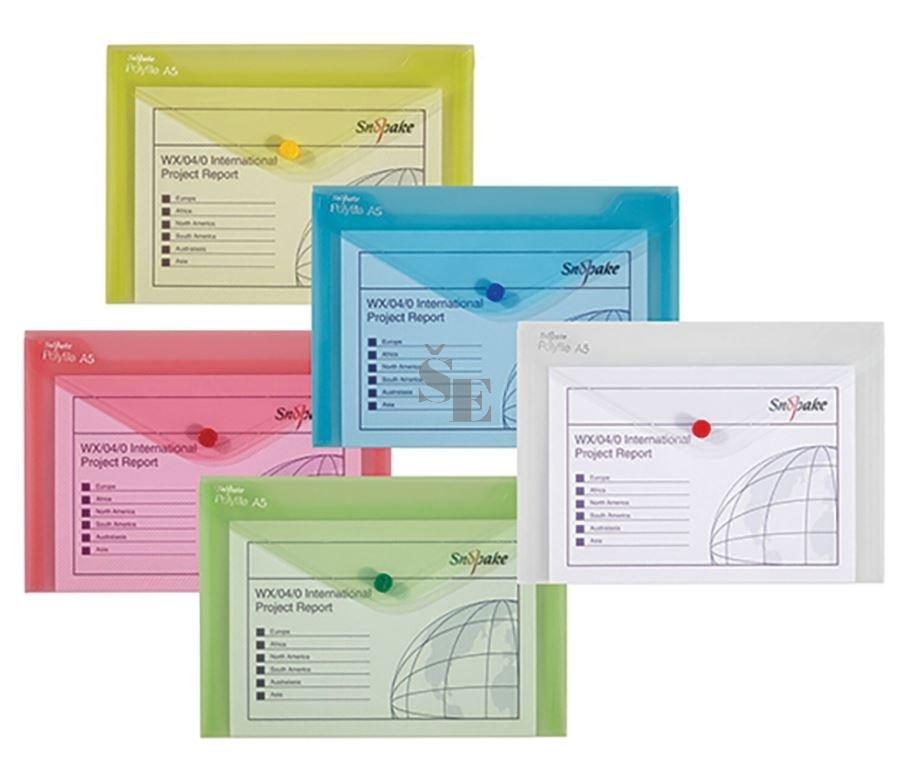 Spisové desky PP A5, průhledné, zavírání jedním drukem, mix barev