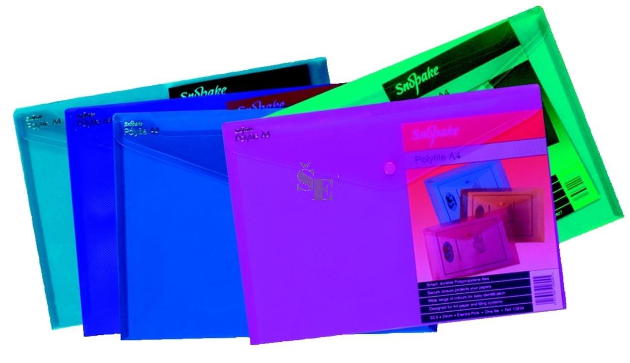 Spisové desky PP A4, průhledné, ELECTRA, zavírání jedním drukem, mix barev, TIM 20 ME