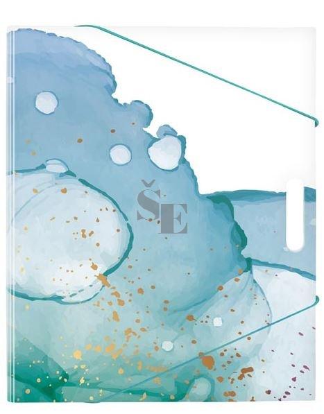 Kreativní nápady si zaslouží nejen prostor, ale i bezpečné uložení. Tato A3 složka s jemným ombre efektem v tónech modré a zelené se zlatými akcenty je nejen praktická, ale i vizuálně atraktivní. Skvěle chrání výkresy, skici a designové návrhy před poškozením a udržuje je vždy perfektně uspořádané.