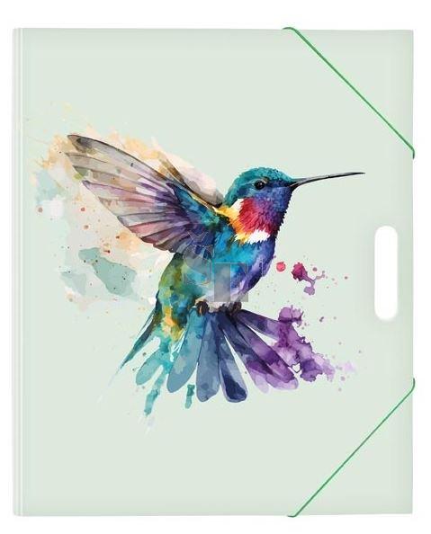 Složka na výkresy v zelené barvě s motivem kolibříka. Je vyrobená z kvalitního lepenkového kartonu, potaženého laminem. Uvnitř složky jsou růžky pro uchycení výkresů A4. Složka je opatřená gumičkou pro pevné uzavření a průhmatem pro snadné přenášení. Výkresy tak zůstanou neporušeny.