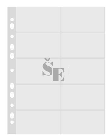 Hladký prospektový obal k založení 2x5 vizitek do zásobníku formátu A4 nebo pořadače pomocí euroděrování. Materiál: čirá ekologicky šetrná polypropylenová fólie (50μm). Určeno pro založení 10 vizitek (jednostranně) nebo 20 vizitek (oboustranně). Určeno pro vizitky do formátu: 95x57 mm. Celkové vnější rozměry: 300x220 mm. Balení: 10 ks.