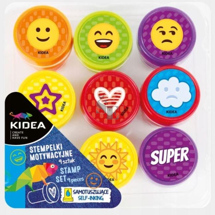 Sada 9 samobarvících razítek Kidea s motivy Emoji.