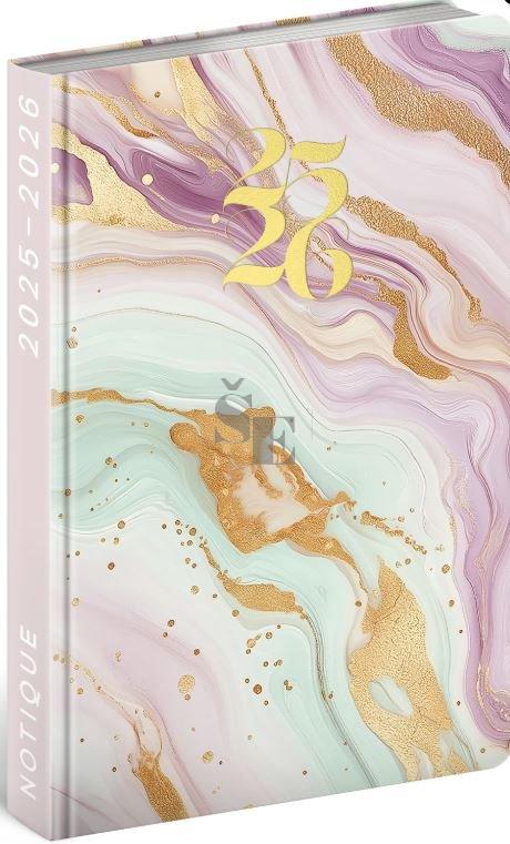 PRESCO GROUP, a.s. Diář týdenní Petito Růžový mramor 2025/2026 11×17cm 18- ti měsíční PGD-35533-V