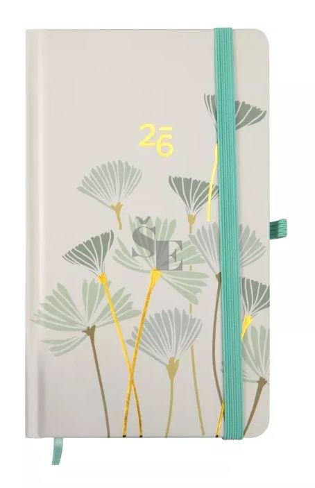 Oblíbená kapesní verze diářů je tu spolu s praktickým zavíráním na gumičku. Diářům na rok 2026 nechybí ani stuha jako záložka pro rychlou orientaci v diáři a poutko na propisku či tužku.
